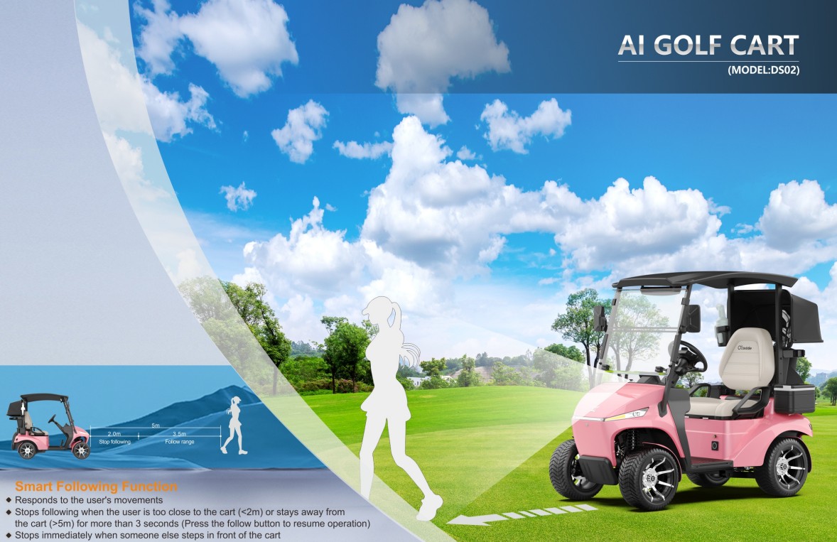 La IA que sigue a un carrito de golf eléctrico se puede usar en varios lugares, como campos de golf, campos de fútbol, resorts o su patrimonio, granja, etc. La estructura es muy simple y fácil de mantener. Puede usarlo para conducir, cazar y transportar bienes.